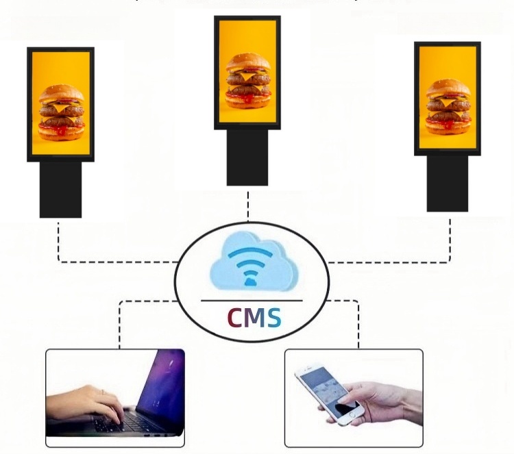 CONTENT MANAGEMENT SYSTEM(CMS) cMs software manages, creates,schedules, delivers,and saves content for digital signage. It allows media to be uploaded and edited remotely too |